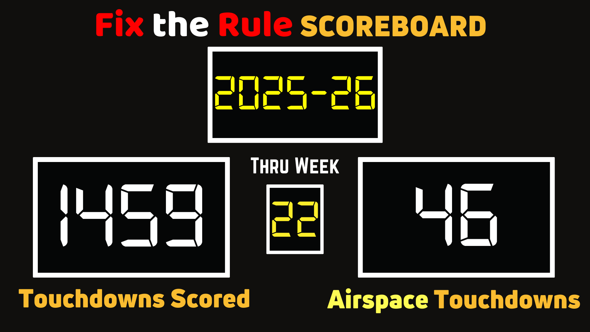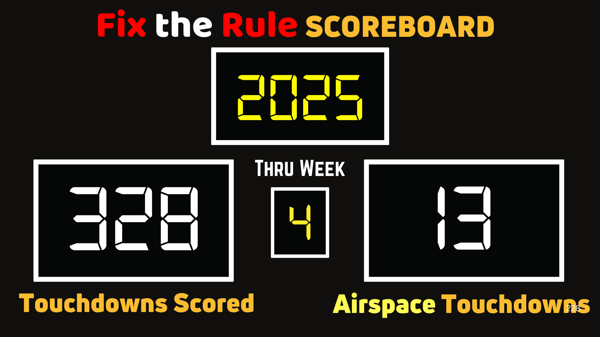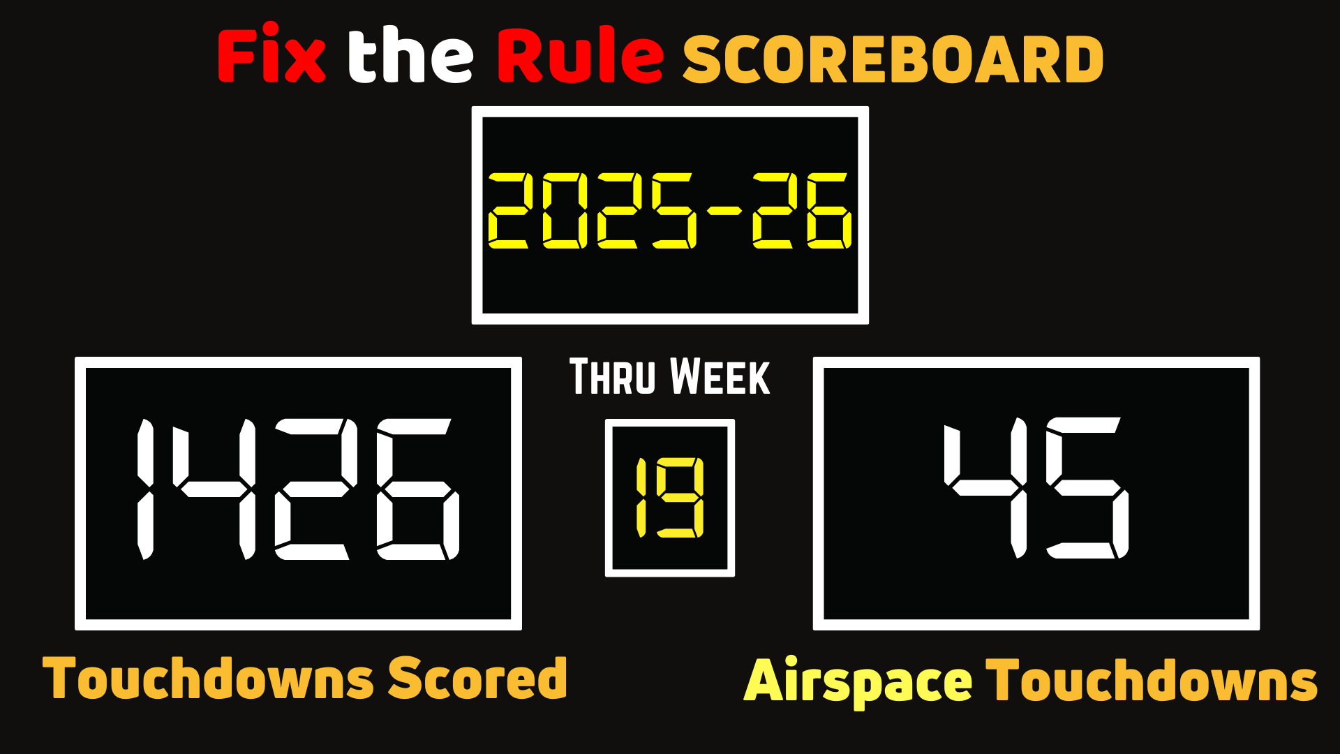 Airspace touchdowns 1) occur too often (almost 1 in every 4 games), 2) are farcical to watch, and 3) diminish the game we love. Fans deserve better.