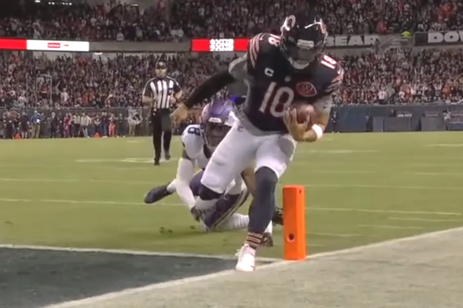 We have seen worse airspace touchdowns, no question. Yet we would rule this corner-cutting run by Chicago’s Caleb Williams to be a no-score since his first step after crossing the goal line lands partially out of bounds. Anywhere else on the field he would be ruled OOB. It should be the same here. Rating: 2.5