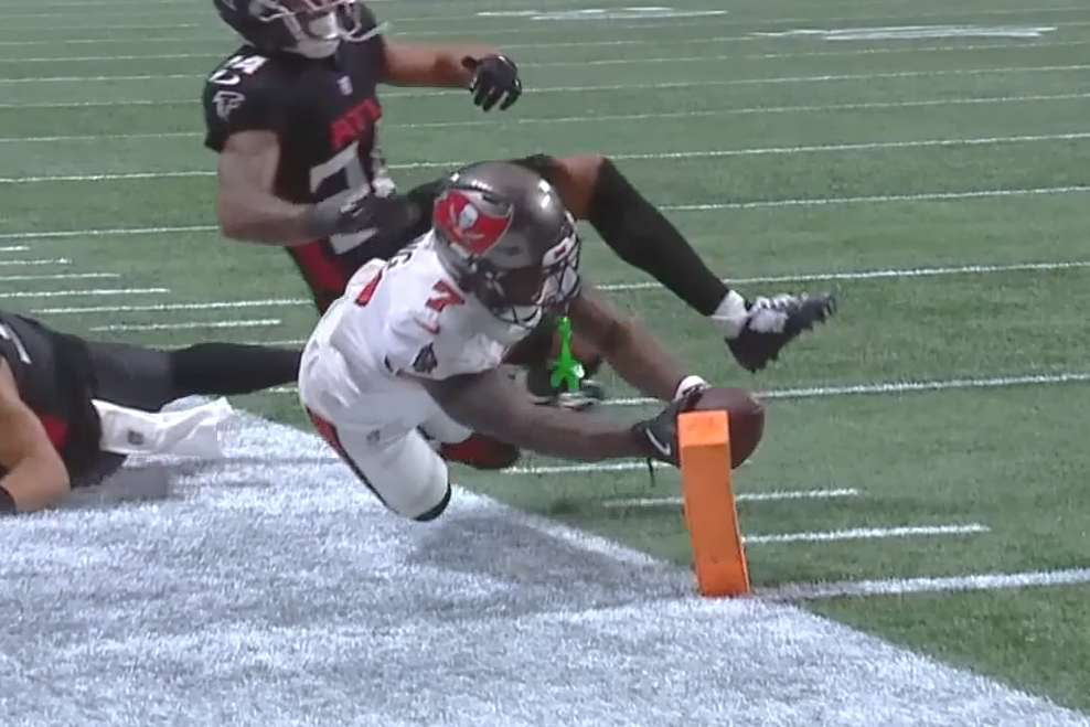 When you just can’t be inconvenienced with actually reaching the end zone, do what Tampa Bay’s Bucky Irving does. Just bang the ball into a pylon and collect six points the easy way.
