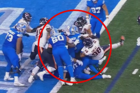 Detroit’s David Montgomery leans into the end zone’s airspace, that’s clear, but he never makes contact with the designated scoring area. In a contact sport, we think that’s a reasonable expectation for receiving six points. Rating: 3.5